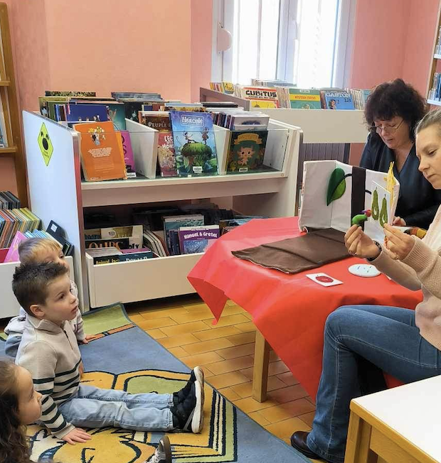 Ce mardi 17 janvier, les élèves de TPS/PS se sont rendus à la bibliothèque pour la lecture d’un« Conte en sac : La chenille qui fait des trous » de Eric Carle.